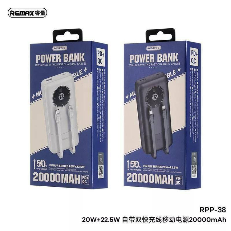 نوع پاور بانک(شارژر همراه): شارژ سریع (Fast Charging) با قابلیت پشتیبانی از PD و QC3.0، همراه با کابلهای داخلی (Type,C و Lightning)
